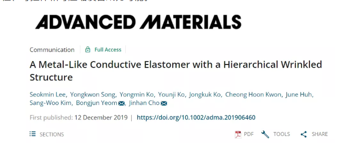 《先进材料》:170000 S/cm!具有超高电导率的层级褶皱结构弹性体