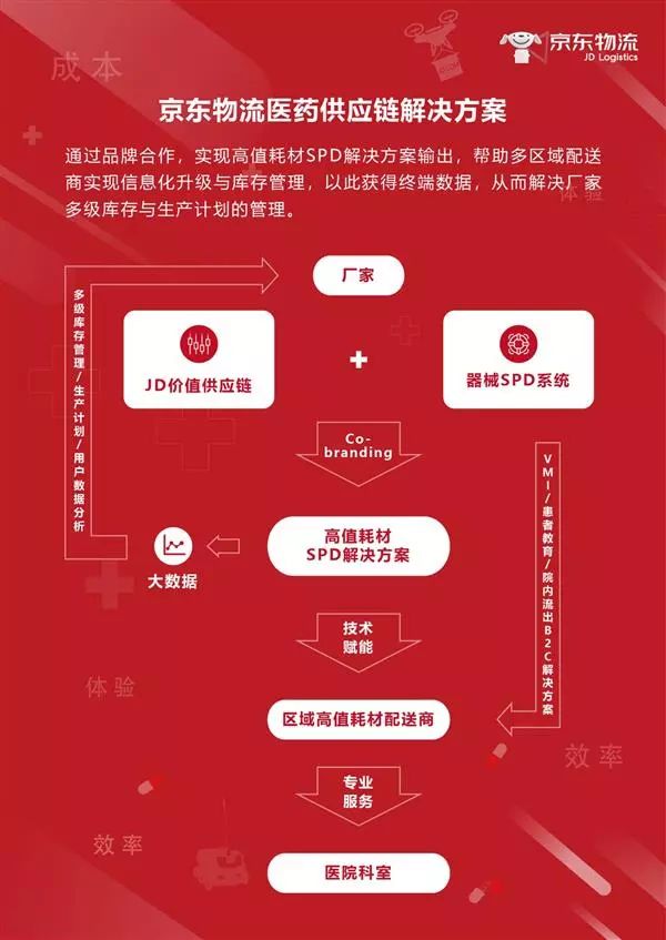 7月19日,2018(第四届)中国医疗器械供应链峰会上,京东物流公布了全新的《京东物流医药供应链解决方案》。明确从医疗器械领域试水,逐步深入到整个医药行业流通领域。通过价值供应链赋能,医药云仓升级扩容,结合强大的运输和配送体系,实现医疗器械流通行业的颠覆升级!