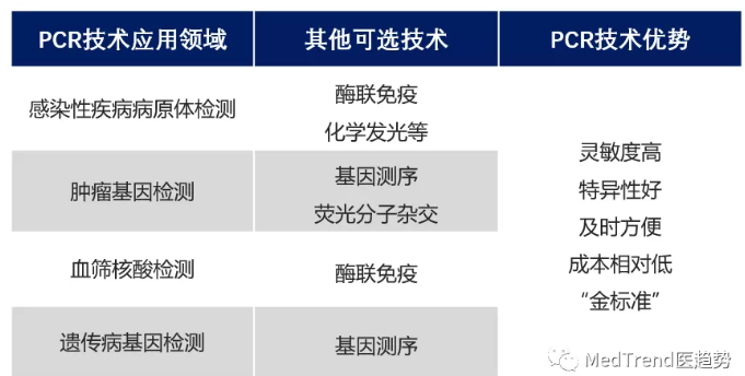 已经成为多种临床诊断的“金标准”PCR技术,广泛应用于感染性疾病病原体检测、肿瘤基因检测、血筛、遗传病基因检测等多个领域。