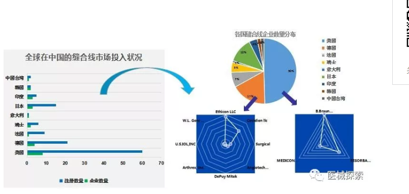 缝合线种类繁多,材料各异,全球竞争激烈,美国巨头独占鳌头,全球市场持增加趋势,缝合线国内市场,进口缝合线仍占据大部分,但国产缝合线也不示弱,获得一定市场份额。