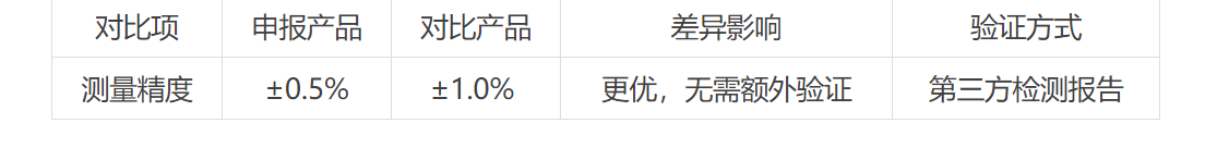 模板化对比表:提供与《免临床目录》产品或已上市同品种的对比表,量化差异项(如精度、响应时间)。