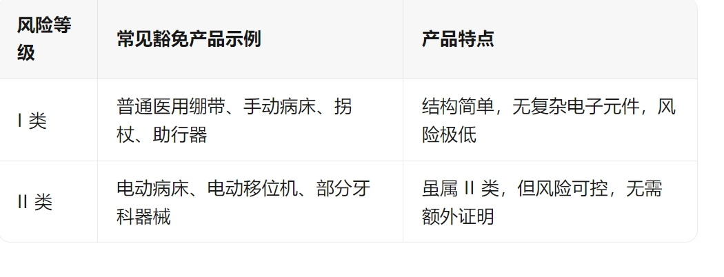 510K 豁免产品主要集中在低风险品类,以下为常见示例(完整清单需查询 FDA 官网分类数据库,结合 3 位字母代码确认):